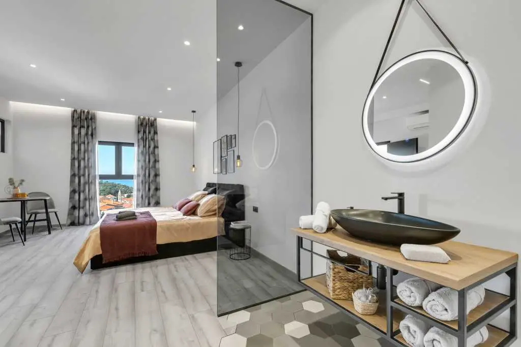 Choose between Apartment Klarisa (80m², 4 persons, private swimming pool), Apartment Robert (120m², 4 persons, private pool & jacuzzi) or Apartment Black Pearl (100m², 2 persons, spa jacuzzi on balcony with stunning sea views).